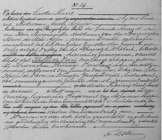 Hessel Siebes de VriesGeslacht: Geboren: 25-12-1799 te Rotsterhaule Gedoopt: 19-01-1800 te Sintjohannesga-Delfstrahuizen † Overleden: 03-02-1847 te Avereest Bijzonderheden: